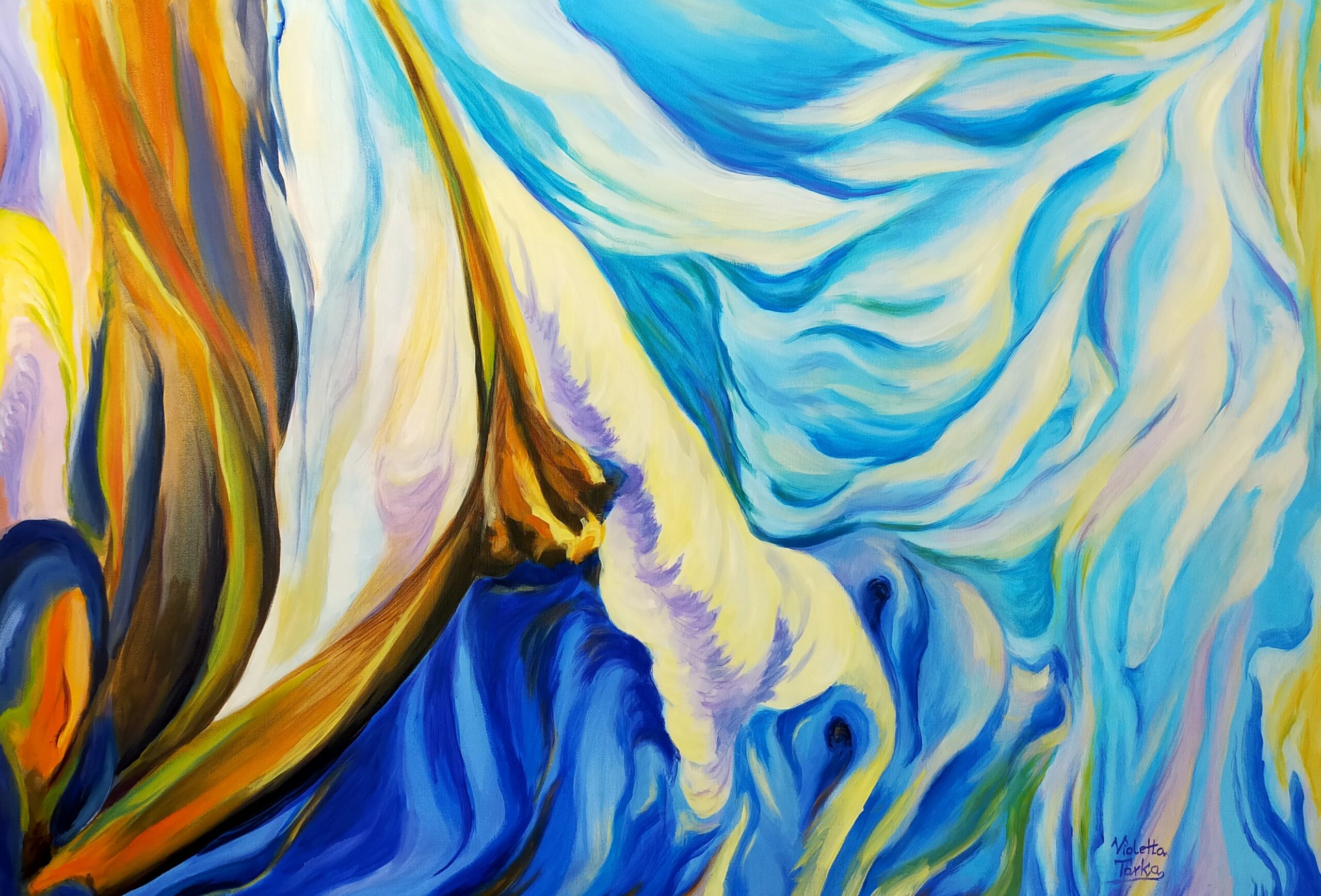 „W płatkach fal” wym. 100x70cm. tech. olej na płótnie 2026r. 3000 euro